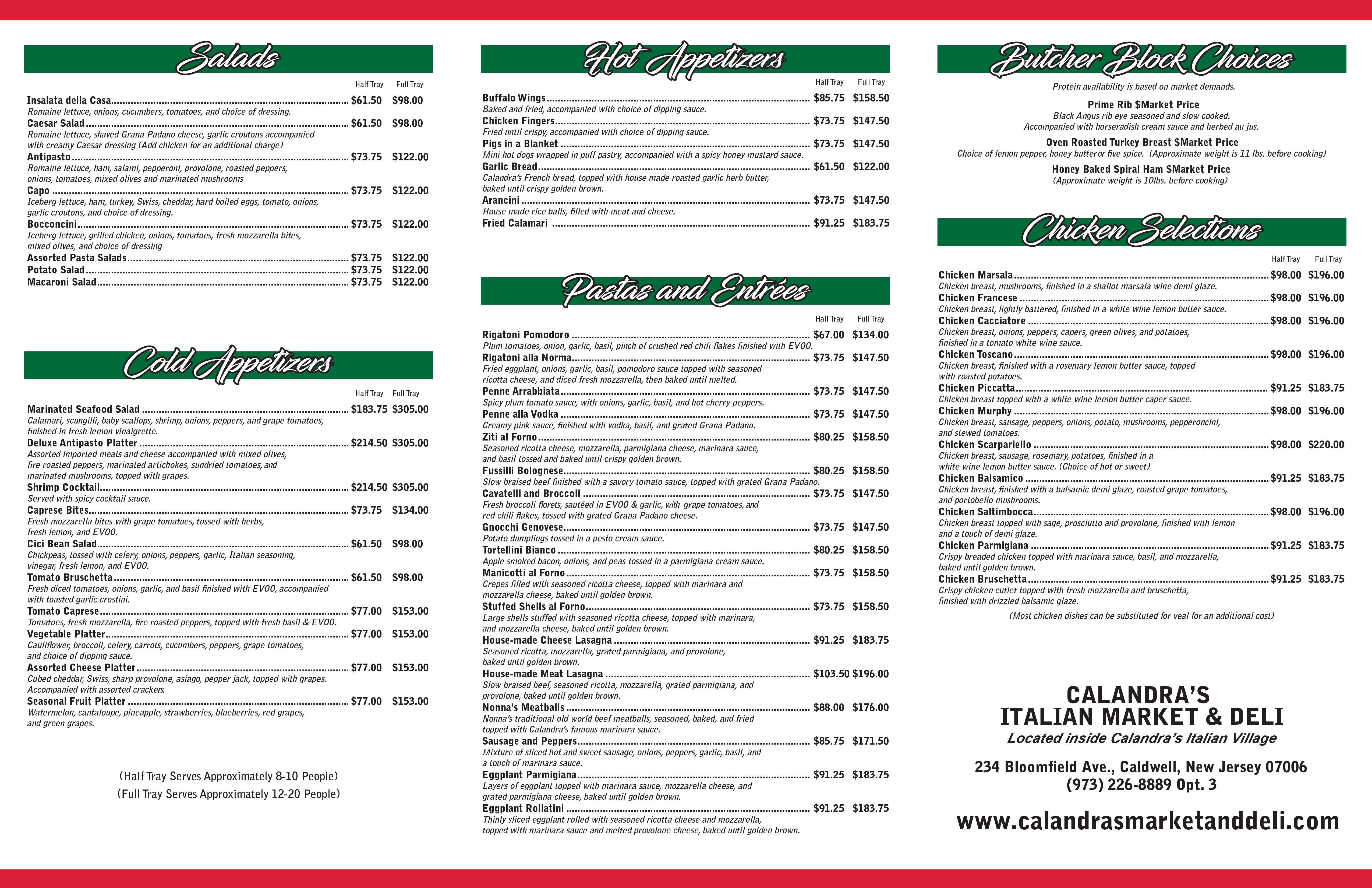 The next time you need unique, delicious catering for a business networking meeting, a backyard barbecue, a charity or corporate event, or even your next holiday meal, leave the cooking to Calandra’s Italian Market & Deli.